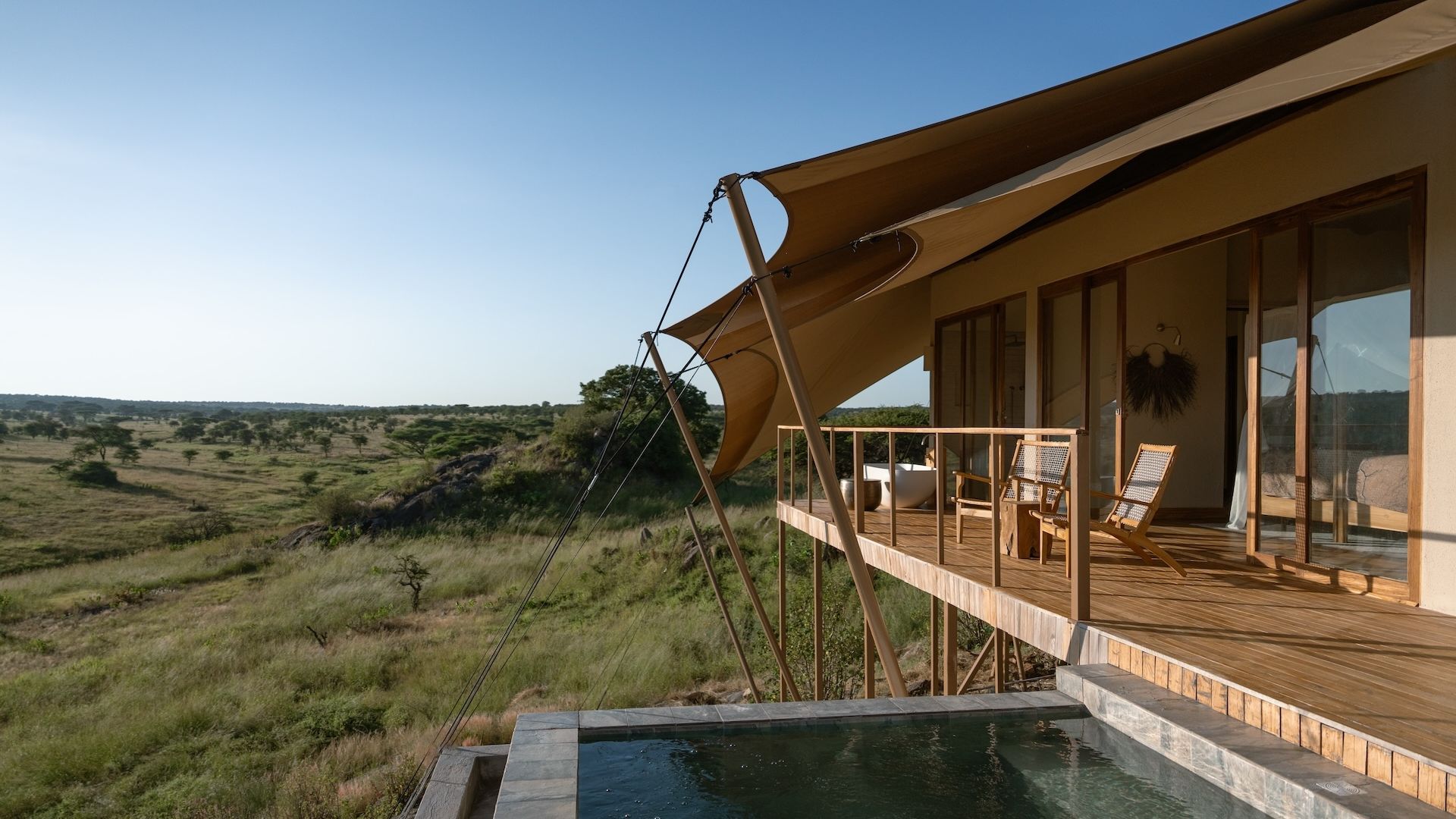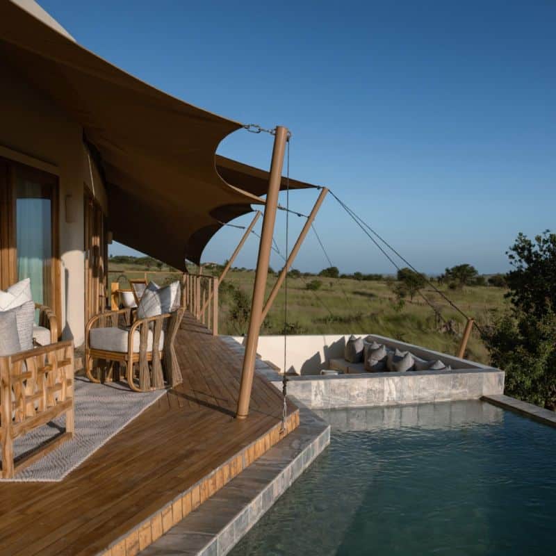 Nestled within the thriving savannah, our seven luxury tented suites offer exclusivity and immersion in the untamed beauty of the Serengeti. Experience the perfect blend of luxury and wildlife as you unwind in your private plunge pool, embark on guided adventures, and indulge in the tranquillity of Nature.