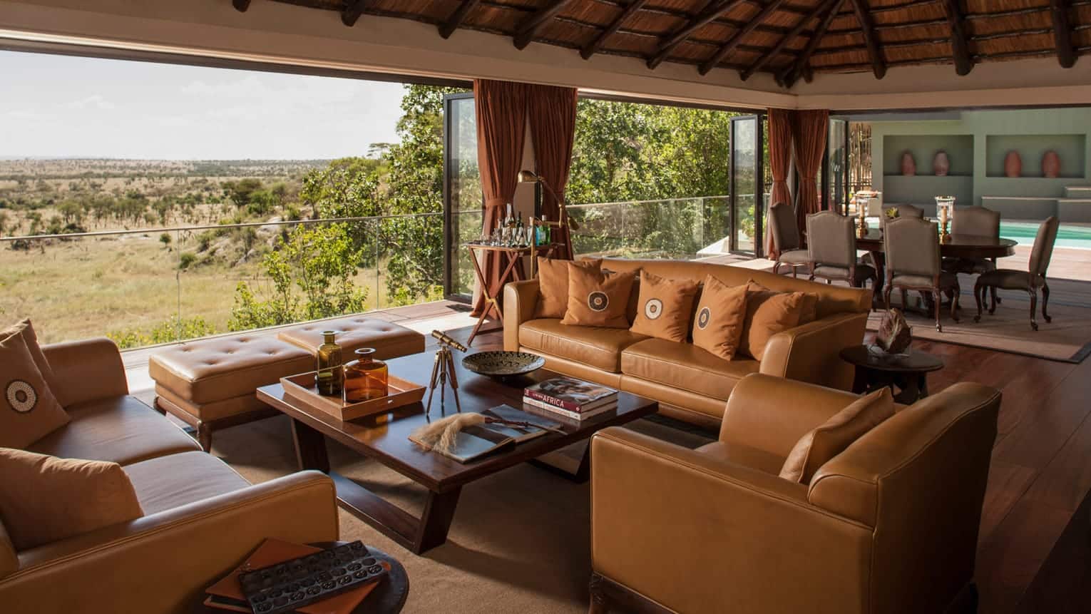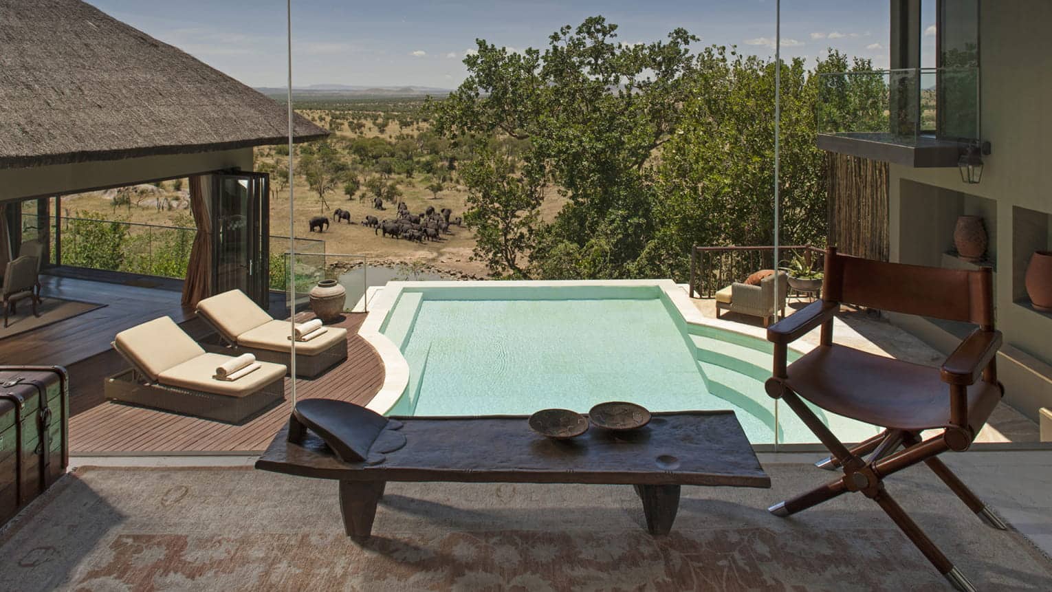Spend a quiet day lounging on a sun bed by our free-form, infinity-edge pool, watching elephants gather for a drink at the nearby active watering hole beneath an endless turquoise sky.